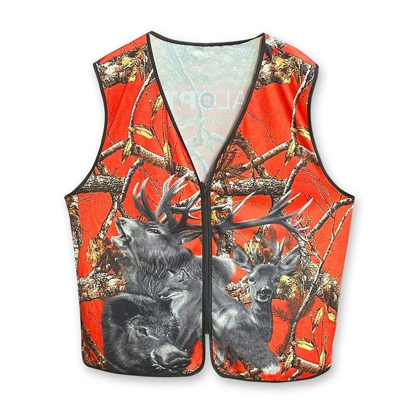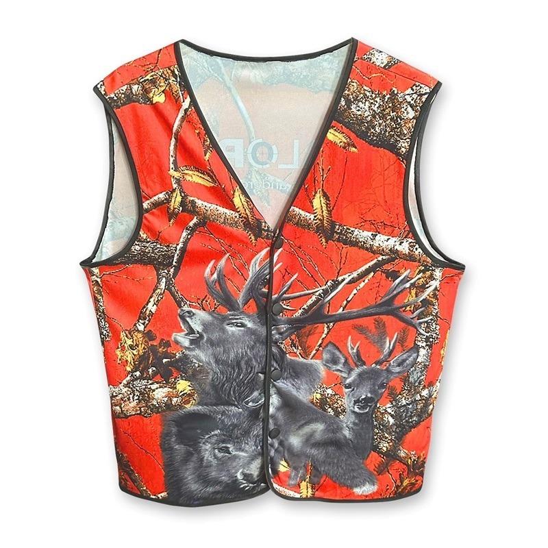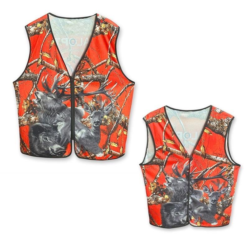 Die äußerst hochwertige Treibjagdweste in der Signalfarbe rot-orange schützt jeden Treiber und jeden Schützen vor vermeidlichen Jagdunfällen, da die Farbe im Unterholz sehr gut zu sehen ist. Bei Gesellschaftsjagden schreibt die Unfallverhütungsvorschrift (UVV) vor, dass jeder Teilnehmer rote Warnkleidung tragen muss.  Die Signal-Weste ist mit einem aufwendigen 3D-Wildmotiv bedruckt und am Rücken ist das Dualoptik Markenlogo aufgedruckt. Erhältlich mit Druckknopfleiste oder Reißverschluss.